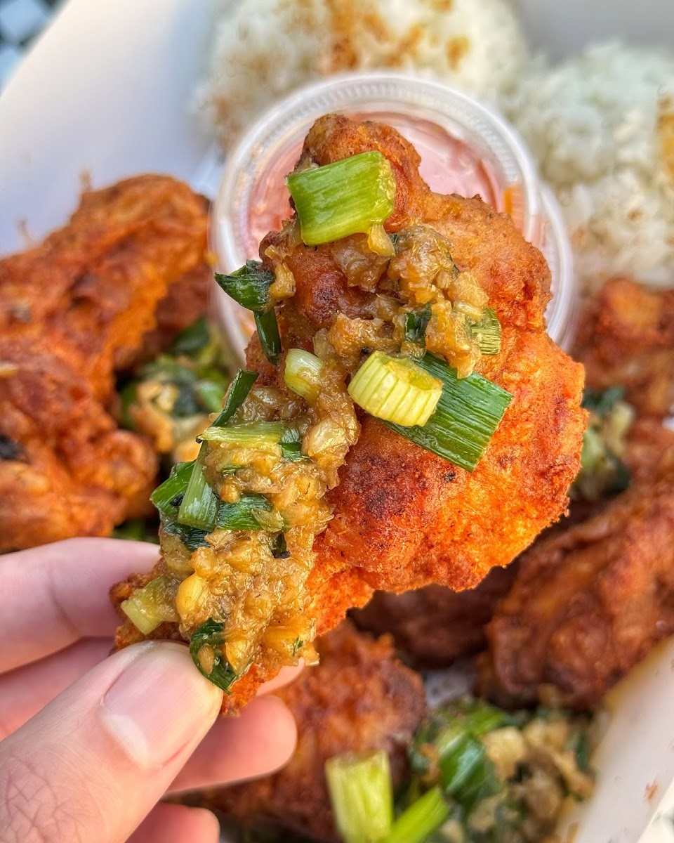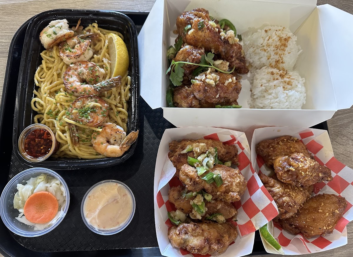 Haven’t been here in a min! So excited to see what’s new! Parking: There’s a free parking lot with plenty of spots. Ambiance/Environment: They have a small indoor space with limited seating. Very clean inside. Yes, they have a restroom for customer use. Service: The cashier was knowledgeable about the menu. Throughput was quick & efficient after ordering. We waited under 8 min. Foods: 1. Chicken Sandos - Best fried chicken sandwich I’ve had in a while. The buns were buttery, the coleslaw was fresh, and the chicken was seasoned well. Perfect size for one person. 2. Garlic Butter Shrimp and Rice - The breading of the shrimp was crissspppyyy! Not sure what exactly the sauce was, but it made the shrimps even more flavorful. Shrimps were also pretty big, and they give you 2 large scoops of rice. 3. Original Garlic Fried Chicken Wings - THE FLAVORS! Now I know why these wings are their most popular! The chicken was fried to perfection and coated generously with the garlic sauce. Pricing: Prices definitely went up but can’t blame them. Honestly it’s worth it! Love their fried chicken!